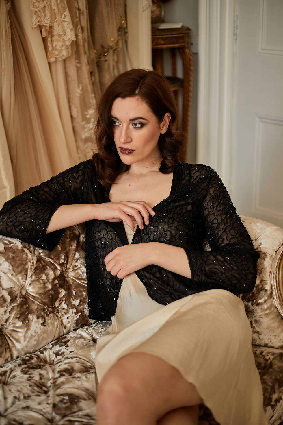 Our unique collection of beautifully restored wearable dresses from the early 1900's Art Deco period. These beautiful pieces have been painstakingly restored by Cara owner of Cocoa Couture creators of handmade wedding dresses.